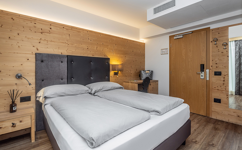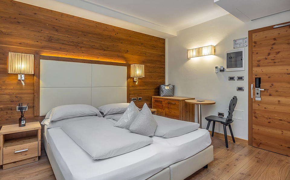 The Compact room is ideal for those who want to enjoy a comfortable vacation and have a welcoming starting point for a stay filled with mountains, walks, sports, and contact with nature.The room features a double bed, and a crib can be added upon request.Choosing the Compact room includes access to the Le Reve wellness center.