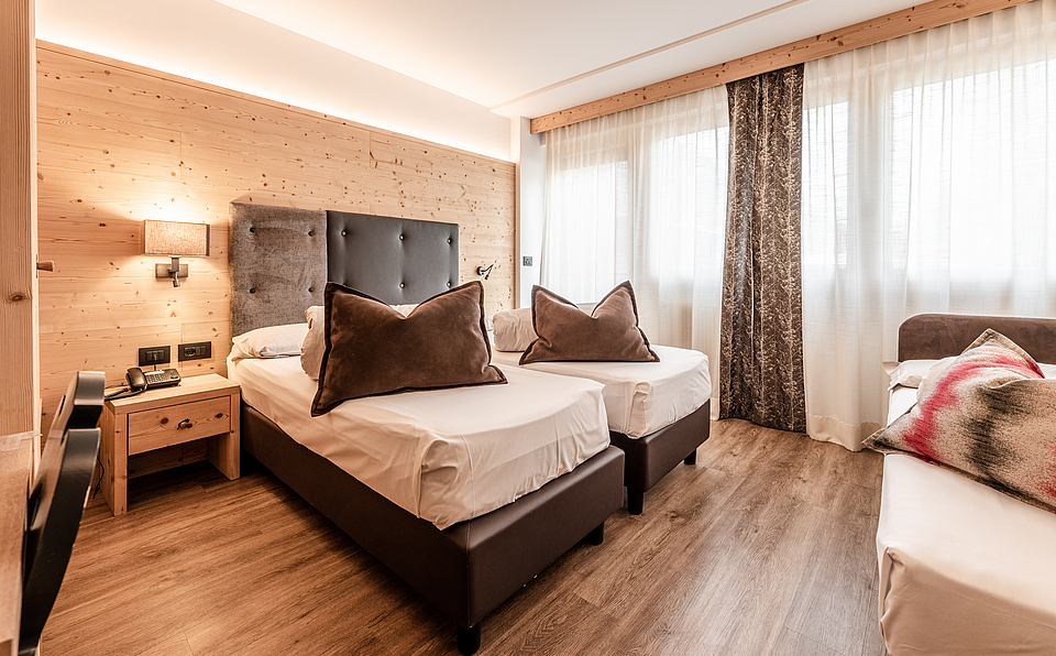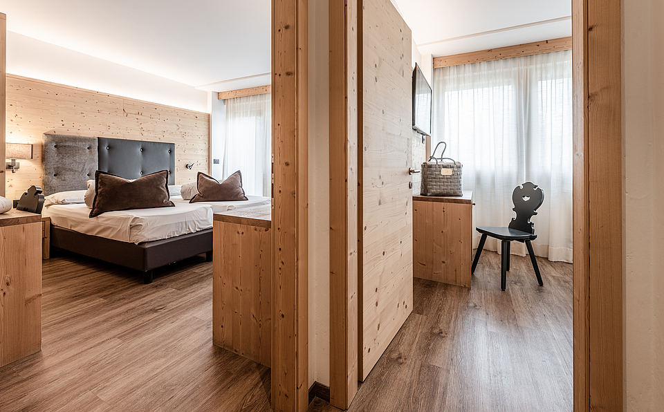 Mountain Suite – Ideal for families or groups, the Mountain Suite blends mountain-style charm with modern comfort. The suite consists of two separate rooms divided by a door, sharing a common bathroom.