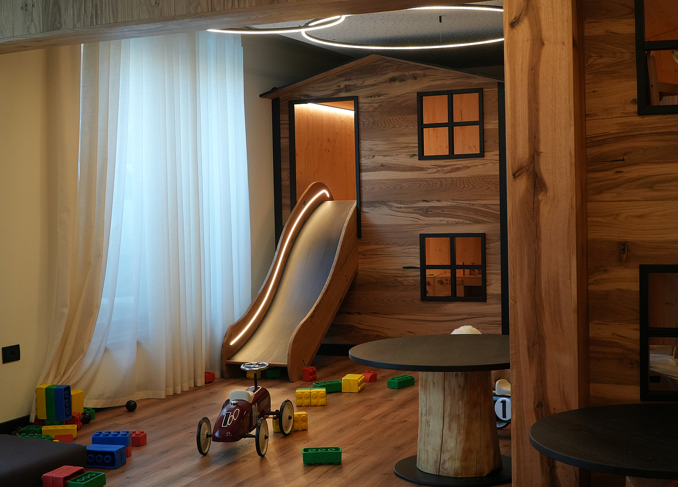 In unserem Familienhotel in Marilleva können die Kleinen draußen auf dem Spielplatz spielen oder sich im Indoor-Spielzimmer austoben.