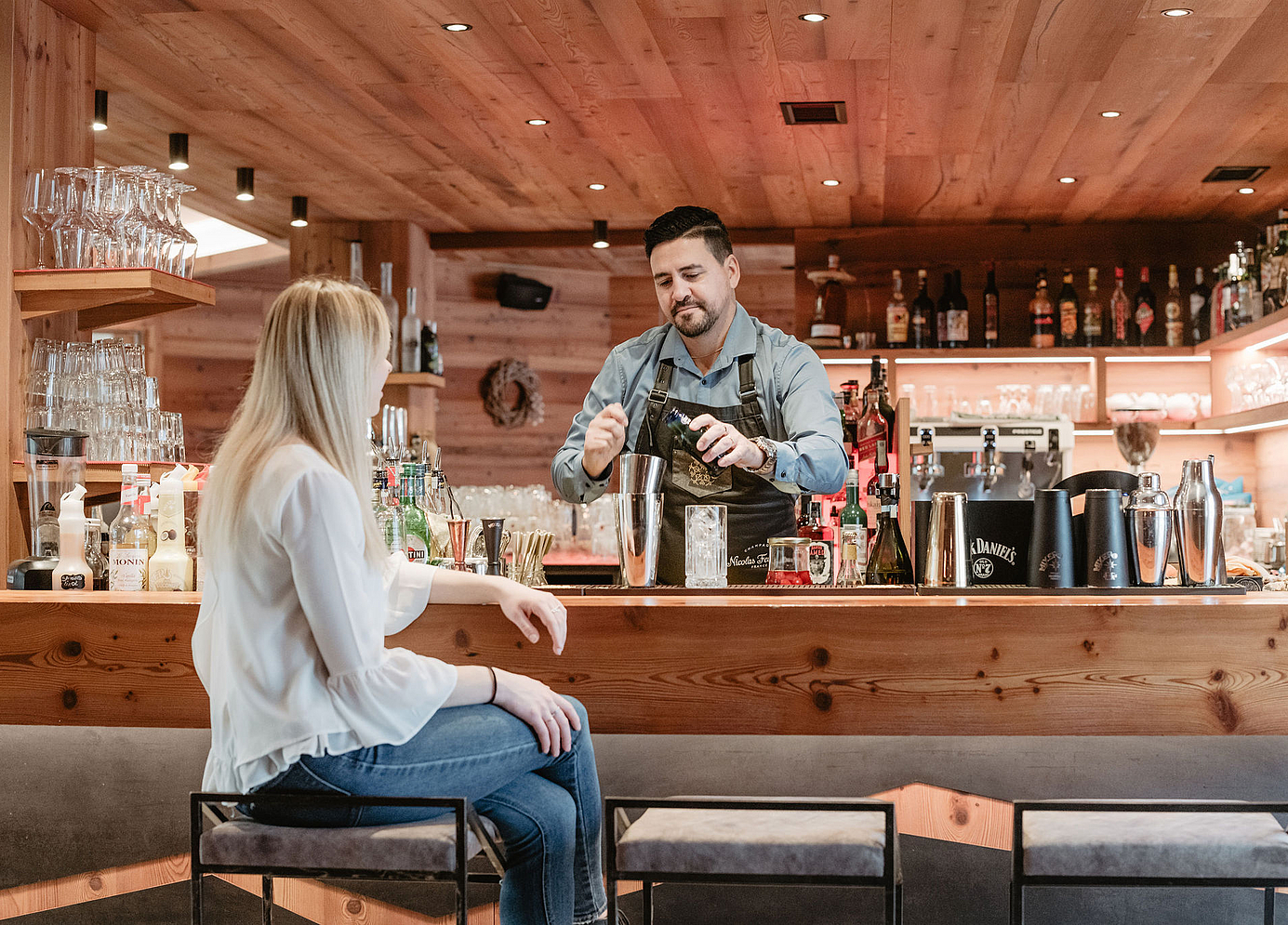 Nel nostro bar rieccheggia un'atmosfera rilassata e una volta alla settimana intratteniamo i nostri ospiti con musica dal vivo. In inverno potrai unirti al divertimento del nostro bar après ski all'aperto, perché una bevanda dopo una giornata sulla neve, si trasforma in molto più di un semplice drink! È un momento di storie e condivisione, in cui poter riposare le gambe stanche e ricaricare le energie.