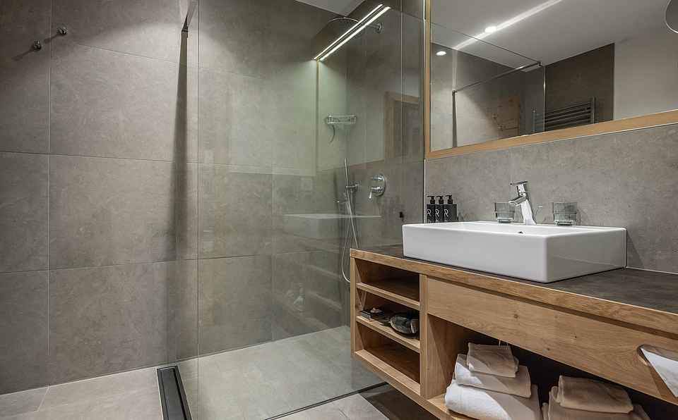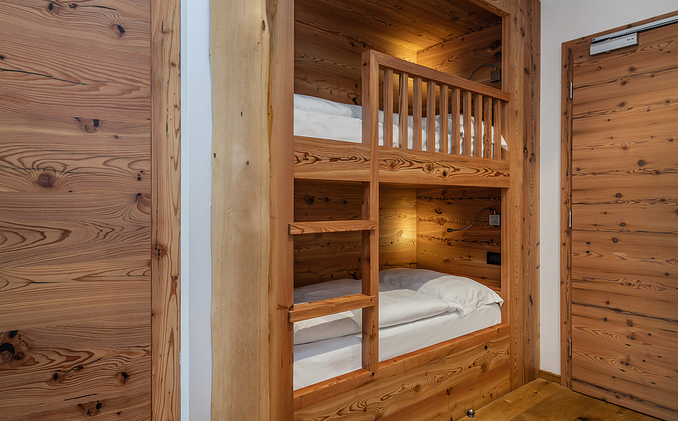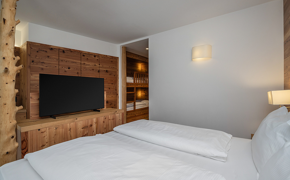 Cozy and styled with a modern alpine touch, these rooms offer a serene and comfortable atmosphere. The inward-facing view, along with a gentle glimpse of the mountains, creates an ideal setting for those seeking relaxation and simplicity, making every stay a rejuvenating experience.