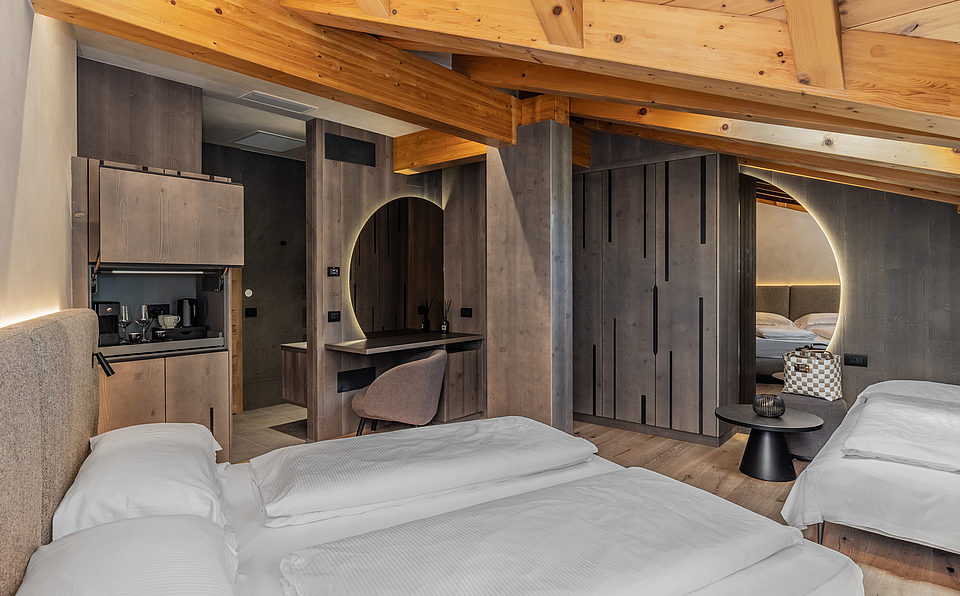 Wake up happy in the rooms, suites and lodges of Ravelli Hotel in Val di Sole.