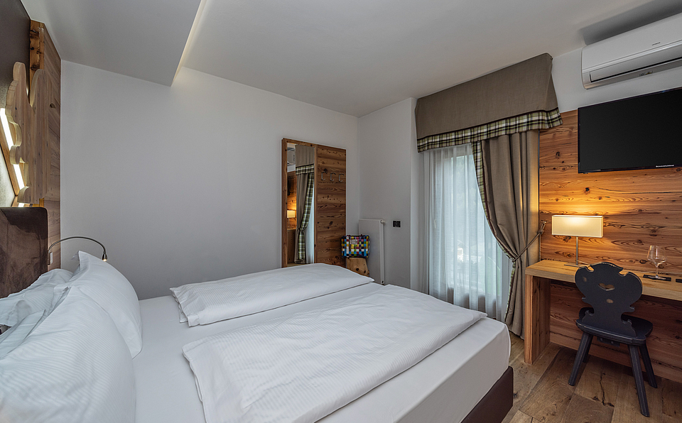 In these rooms, peace and beauty blend harmoniously. The direct view of the majestic mountains of Val di Sole offers a breathtaking awakening and a deep sense of connection with nature. An ideal setting for those seeking moments of tranquility and reflection.