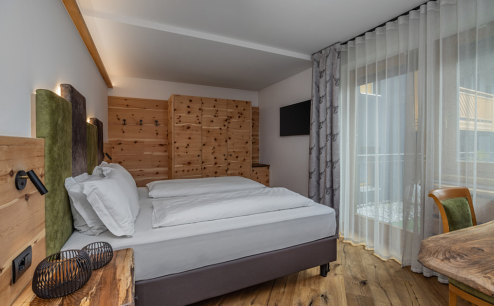 Feel the power of the mountains in your room. Our Alpine Rooms are furnished with wood in a modern country house style. Warm colours and selected details define the spirit.