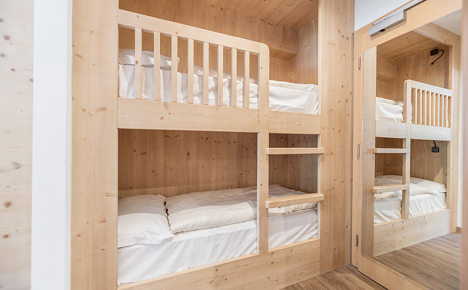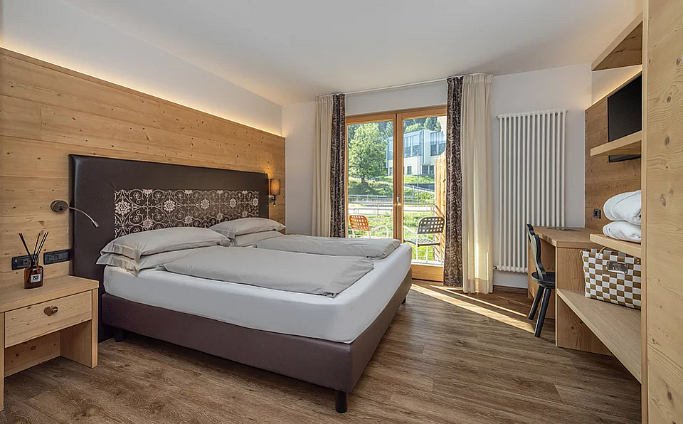 The word "family" has never rhymed so well with "comfort." Yes, because the Comfort Family rooms with balcony feature a double bed plus a wooden bunk bed. They also have a balcony that overlooks the back of the building. All fabrics and materials used are hypoallergenic.The beds are designed to ensure perfect sleep quality. Relaxation is guaranteed.